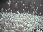 種もみを塩水に浸けることにより、底に沈む実の詰まった物と表面に浮かぶ実入りの少ない物を選別する作業だ。昨年は半々の浮き沈み率だったが…果たして!? |
