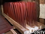 これを樹液が落ちないように専用のへらでかき集める。 |