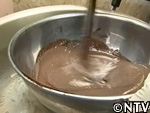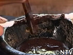 湯の中に漆の入ったボウルを入れ、水分を蒸発させることにより漆の透明性が増す。