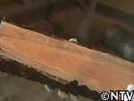 絞り切った漆の中に含まれる泡が消えるまでの間に、箸の木材探し。塗り箸に適している1年以上乾燥させた木の中から達也が選んだのは、硬くて緻密なヤマザクラ。