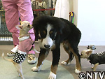 早速、4か月のチワワのポッキー(♀)、同じくチワワとマルチーズのミックス5カ月のこぶし(♂)、4か月のミニチュアダックスフンドのカール(♀)、3か月のパピオンのチキートなどの好奇心旺盛な子犬たちは、お互いに身を寄せたり、匂いを嗅いだりと、興味津津。