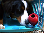 短時間の留守番の時は持ち運びできる小屋(クレート)がよいという。少し小さくも思えるが、本来 犬とは、狭くて暗いところに入っているのが好きな動物。