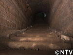 そして、地下壕の西側奥深くへ進んでいくと、50段の石造りの階段が。