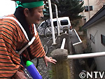 松岡が階段を上ろうと差し掛かった時、その長さ90cmの水鉄砲の水が松岡に向けられた!