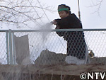 そしてその予想通り、階段上で待つのは長さ90cmの水鉄砲を持つのは、元自衛隊員の木村兵士の姿。