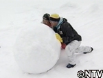 世界のヘビー級トップクラスとまともに渡り合えるそのパワーで雪玉を運べるか!? |