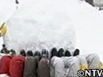 男たちの掛け声で、『おゆき』を一斉に引くスキー場の皆さん!