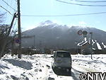 期待が高まる中、この土地ならではの温泉名物を探して車を走らせていると、前方に除雪作業中の地元の方が。早速聞き込み開始! |