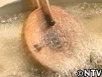 一瞬、揚げもの料理を作っているかのような錯覚に陥るがこれが、正真正銘の木鹸の作り方。 |