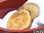 木の表面に付着した石鹸を落とし、乾燥・研磨の工程を経て、松川温泉名物「木鹸」の完成! |