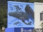街道沿いを走っていると、この島を開拓するきっかけになったクジラの看板を発見。