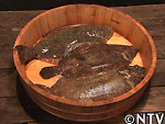 塩の効果で粘りが増した身を給水と殺菌効果がある杉の板に乗せ、蒸すこと30分。 |