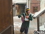 振りかぶり、投げようと思った柄沢兵士だが、松岡との距離が、あまりにも近すぎて投げられず、驚きバランスを崩し転んでしまった!