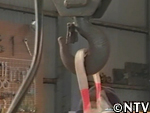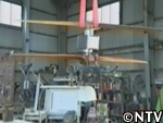 作業用クレーンで吊って、城島の頭にシゲコプターを装着してみると、