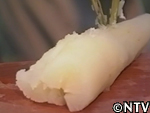 皮をむくと、ダイコンの様な真っ白さ。