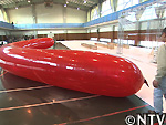 奥から手前へと均一に空気を送り込み、伸びに伸びた風船は直径は1m、長さ14m!