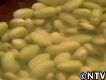 倍以上にふくらんだアオバタ豆は、普通の大豆より、少々大きい。