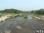 鴨川を渡る為の重要な手段である名物の飛び石を渡り、一気に目指す!! |
