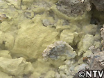 いたる所で噴出する90℃以上の蒸気に苦戦しながらも、岩に付着している硫黄をゲット! |