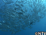 そして前方、大きな岩のくぼみの影に銀色に輝く魚群。ついに、ギンガメアジの一団を発見するも・・・近づくほどに黒く変色したギンガメアジが多く、数も少ない。