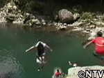 女の子がなんなく飛び込む姿に驚く2人だが、覚悟を決める! |