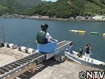 注意を促すも効果なく、勢い余ってタライごとあえなく海へ。