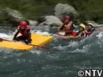 ここで地元の腕白に人気なのが、特製のタタミに乗って激流を下る“タタミ乗り"。