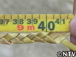 そして、だいぶ麦稈真田編みに長さが出てきたところで、それぞれの編んだ長さを測ることに。
