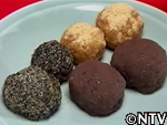 玄米を用い、餡・ゴマ・黄粉の3色牡丹もち。