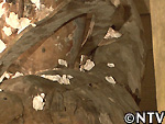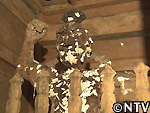濡らした紙を仁王像の右首めがけて投げる!!