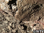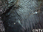 富士山の麓、船津胎内樹型の中を進む松岡。祈願成就のため、洞穴最奥部にある「乳房」と呼ばれる岩から滴る富士の清水を目指していた。
