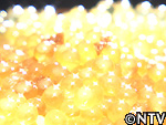 一般的にサケ科のイクラが赤い理由はエサとなるオキアミによるもの。ヤマメはヤゴなどの色素が薄い水生生物を食べるため、黄金色だという。