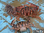揚がってきた、そのカニの体には見事な縦シマ模様。