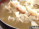 漁師の黒木さんが、生きたままトラガニを豪快に鍋へ。