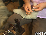この作業を続け、暖かな毛糸に仕上がったのは、茅葺屋根の補修が始まった9月の終わり。 |
