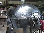 この工場では、ヘラで金属素材を変形させて加工し、鍋などの調理器具の他に、パラボナアンテナやロケットの先端まで製作を行っているという。