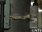 そこで自動車の部品などをプレス加工している「川口板金」にある1200トンもの圧力をかけられる超大型プレス機でゴムを型に押し込んでいく。