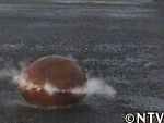 達也が手を離すと同時に勢い良く落下するスーパーボール!