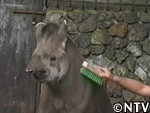 伊豆シャボテン公園のバクは、大好きなブラッシングをされると気持ち良くなって寝込んでしまうという習性があり、ブラシの音を聞いただけでも近くに寄ってくる。 |