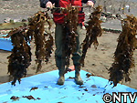 DASH海岸に流れ着いた5株のワカメから、計20kgのワカメを収穫。 |