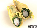 達也の主菜候補、『ンジャナの車エビ包み天』の出来上がり。