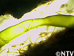 ヒビの一部を顕微鏡で観察し、ノリの発芽体を探すが、体長5o程のヨコエビの仲間、緑藻類のアオノリを発見したものの…