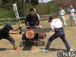 今回は一般部門の予選で使われる直径30cmの杉で対戦。