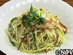 千切りにした果皮付近を、ベトナムの焼酎を使う伝統の『ヌンムッバンルッ』という調理法でスルメを火であぶって、最後にピーナツやパクチーを添えて、『マンゴーサラダ』の完成。