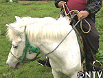 定男さん「もうだいぶ馴れた」 そこで、背中に乗るときの扱いも教えてもらう。 馬の操作は、右に曲がるときは手綱を右に、左に曲がるときは左に引く。 そして、両方を同時に引くと止まることができる。 馬へのかけ声は「ハイ」の合図で進み、「デー(ドー)」の合図で止まる。 二人は道子を乗りこなせるか?