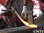 小松さんにならい、ハンマーを持つのは太一。 太一「DASH村でやったことあるからね」 2006年、里山のふもとに鍛治小屋を建て、鉄を打って作った鍬(くわ)。 前回は叩いて鉄を薄く伸ばしただけだが、今回は違う。 熱して叩いて、まずUの字に、もう片側も曲げていく…だが、 太一「うわー、難しい!」 鉄がまだ熱いうちに、小松さんの手直し。