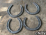 続いては、それを見ていた長瀬。 と、定男さんに褒められ、手早く釘用の穴、目打ちにも取りかかる。 だが、蹄鉄の曲線はあらぬ方向へ…。 そして、道子のために、定男さんも器用な手さばきで成形。 それぞれの担当、形はやや不揃いだが、 道子の足に合わせ、調整しながら、固定していく。 気ままな山育ちの道子は、初めての蹄鉄を大人しく受け入れるか?