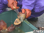 それは函館港から、青森は津軽海峡を渡るため。 函館港は市の中心部、この先、海沿いの道を16km。 長瀬「街中に慣れさせていかないとね」 そして見えてきたのは、冷たい潮風、志海苔(しのり)漁港。 そこで、漁師さんたちがタコやらウニやらと一緒に 海から揚げていたのは、ホヤ。