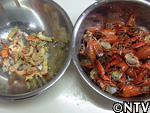 次に、ウチダザリガニをむき、殻と身を選別する。