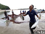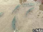一方、チャンピオンは狙ったブリを浜の方へ追い込むと、両手に1本ずつ、一度に2本のブリをつかんで、そのままゴール!